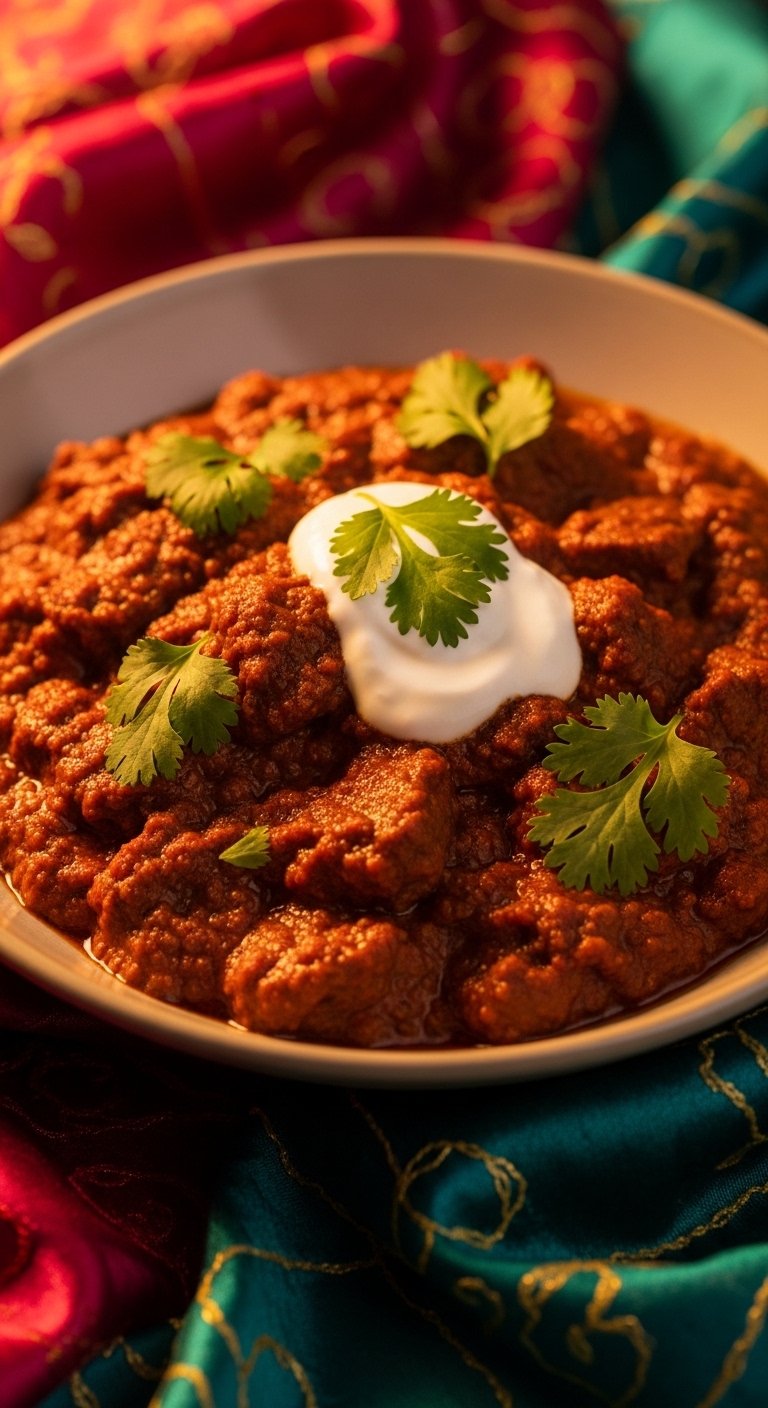 Inspired by Rogan Josh, this curry uses Kashmiri chili for color and warming spices for depth. It’s aromatic, medium-hot, and pairs well with fragrant basmati rice.