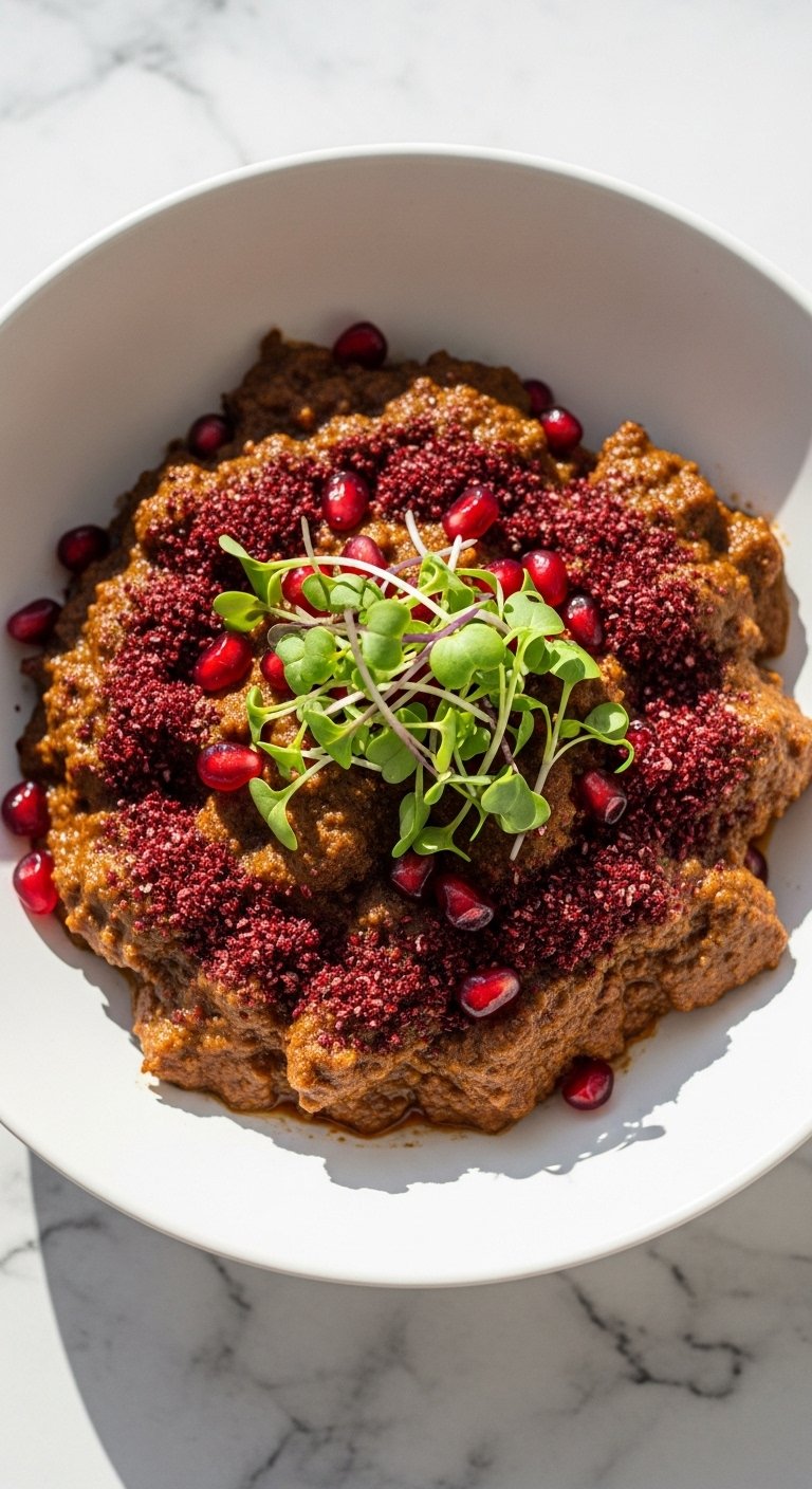 - Garnish: Sprinkle more sumac and pomegranate before serving.