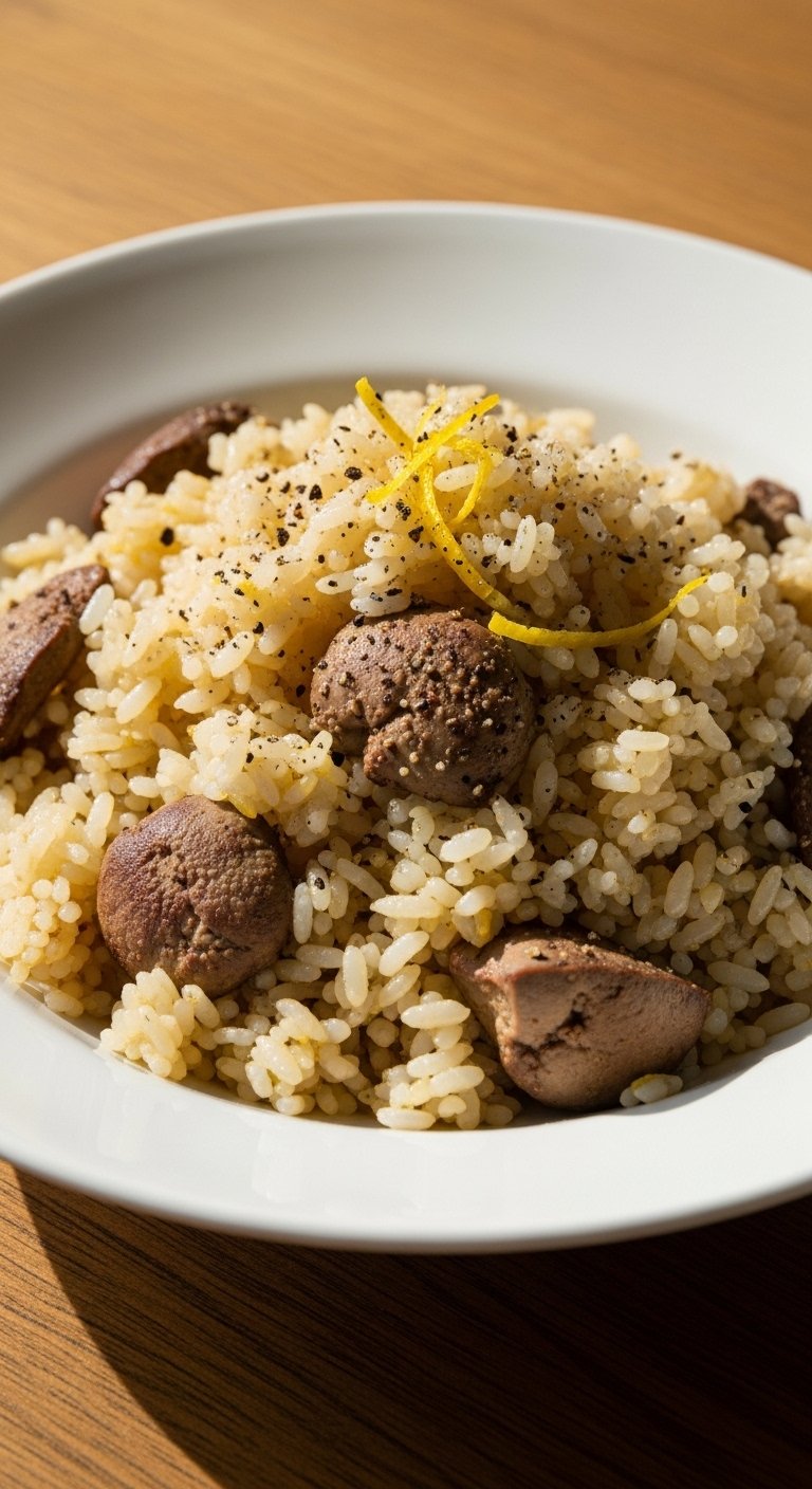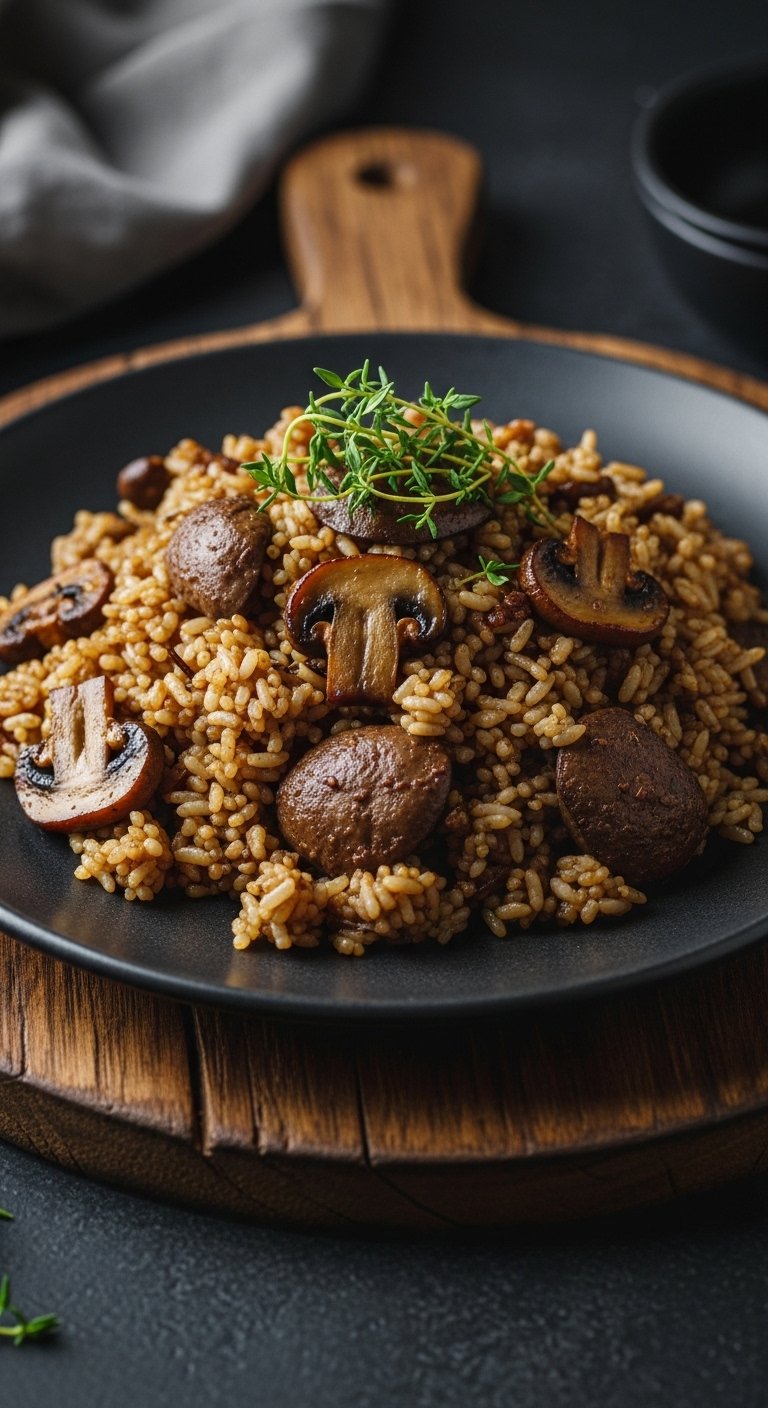 Umami-rich mushrooms and aromatic thyme complement the indulgent livers, creating a rustic, savory bowl that feels upscale but stays budget-friendly.