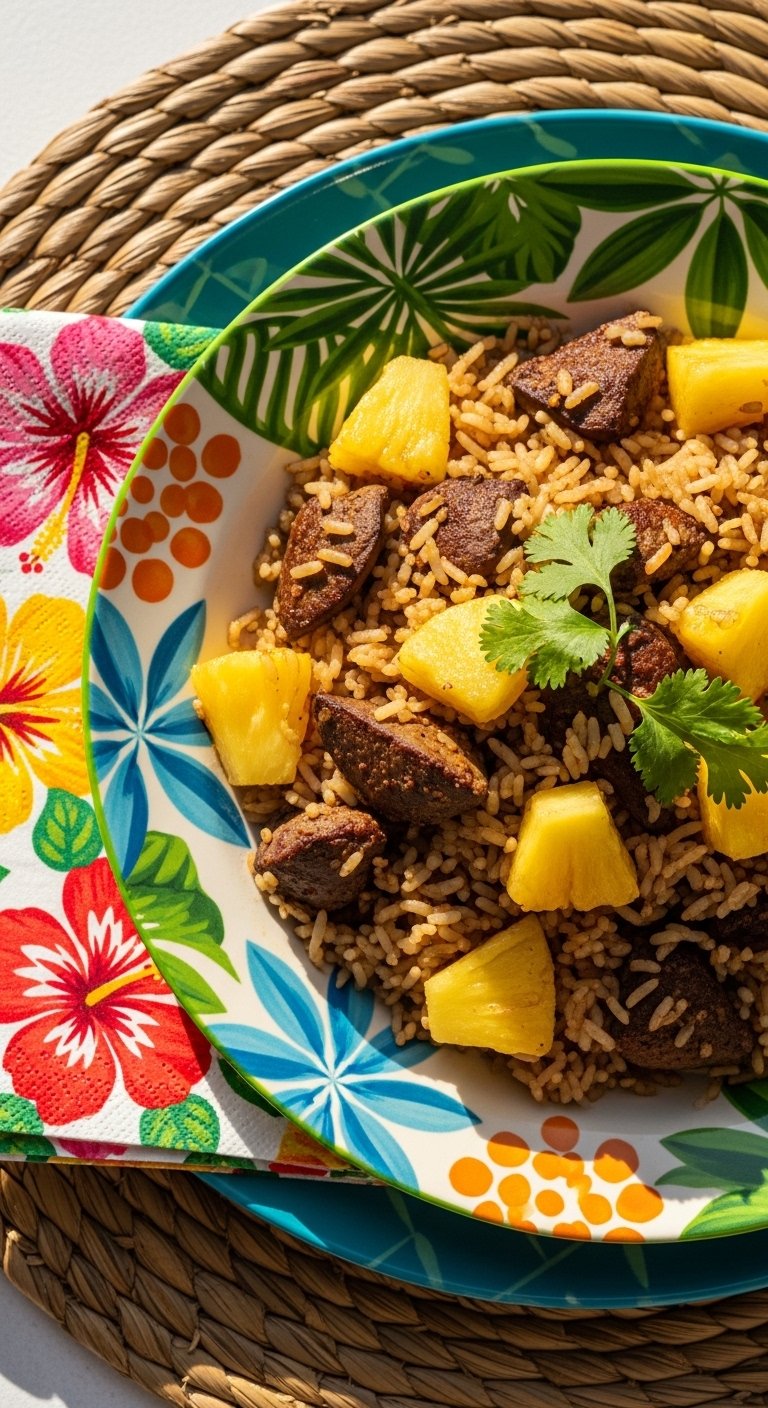 Sweet pineapple contrasts the savory livers for a lively sweet-and-sour bowl. It’s playful, quick, and perfect for lunch or dinner with a hint of citrus acidity.
