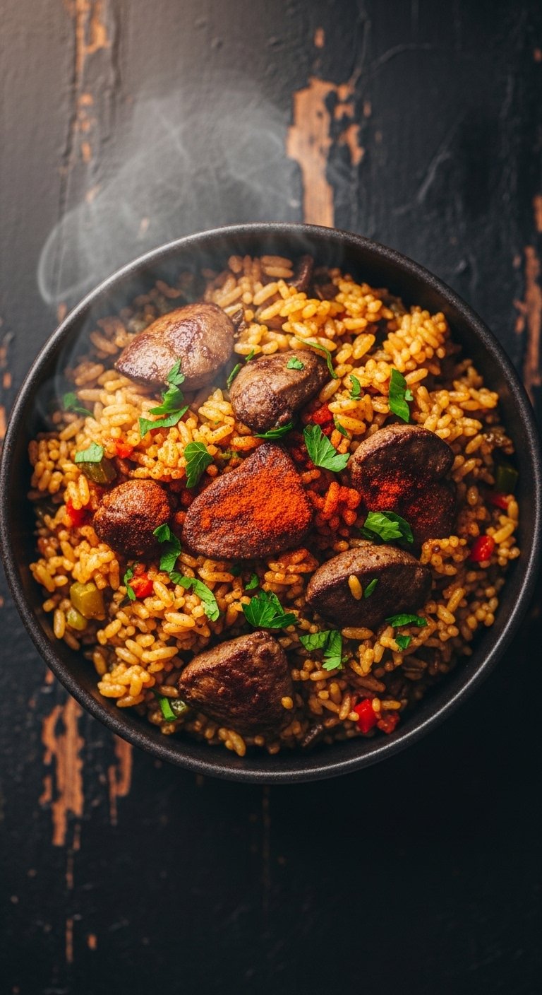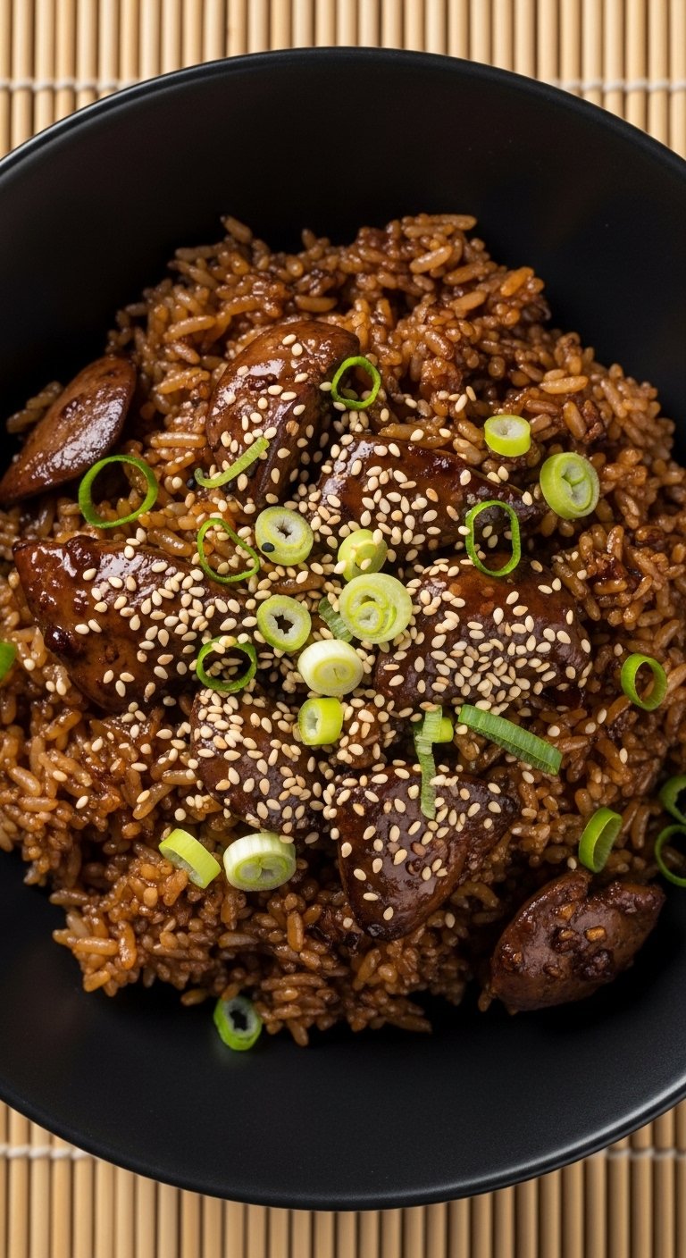 Savory, garlicky, and umami-forward, this version is a weekday winner. The livers are seared until tender, then tossed with rice and soy for a glossy finish and craveable texture.