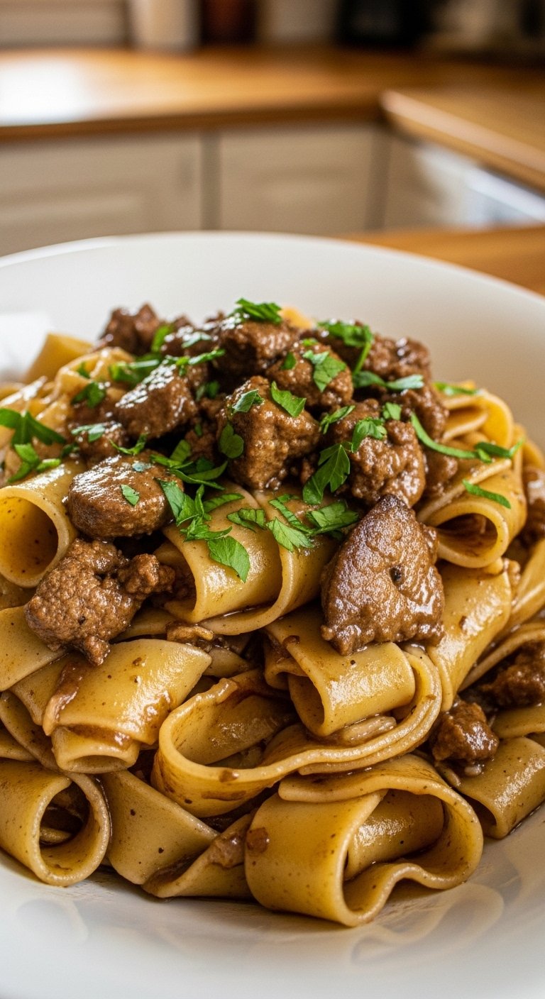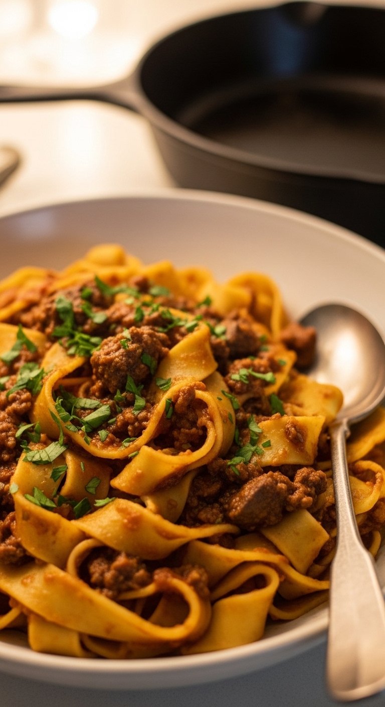 - Serve: Toss pappardelle with ragù, garnish with parsley.