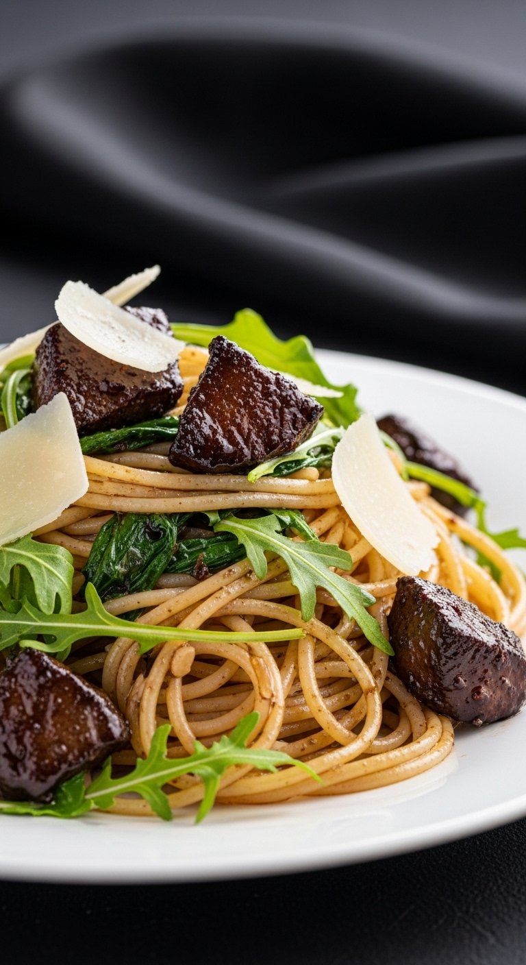 Spinach and a touch of nutmeg soften chicken liver’s intensity, creating a mellow, creamy pasta. Penne holds the sauce perfectly; this is gentle, comforting, and elegantly spiced.