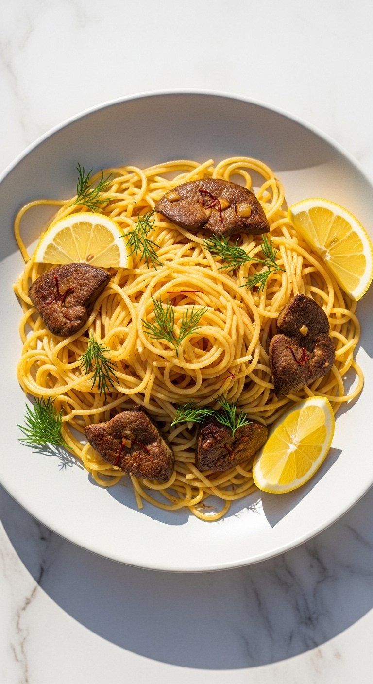 17. Saffron Chicken Liver Spaghetti With Lemon And Dill