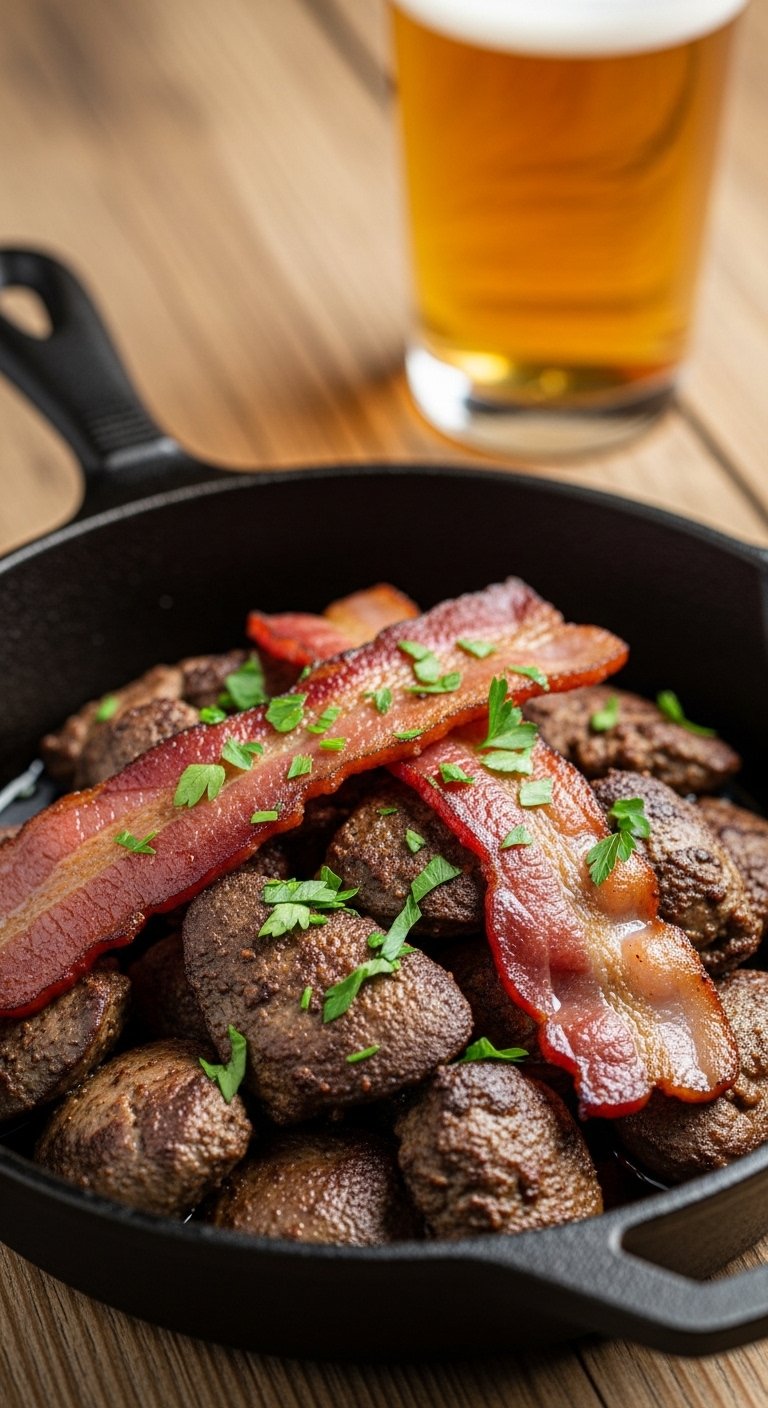 Smoky bacon and rich livers make a hearty, fast skillet. This is a craveable, savory dinner—serve with mashed potatoes or a buttery slice of toast to soak up the juices.