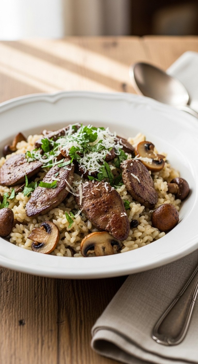 - Brown Livers: Add livers, sear until just pink, 3–4 minutes.