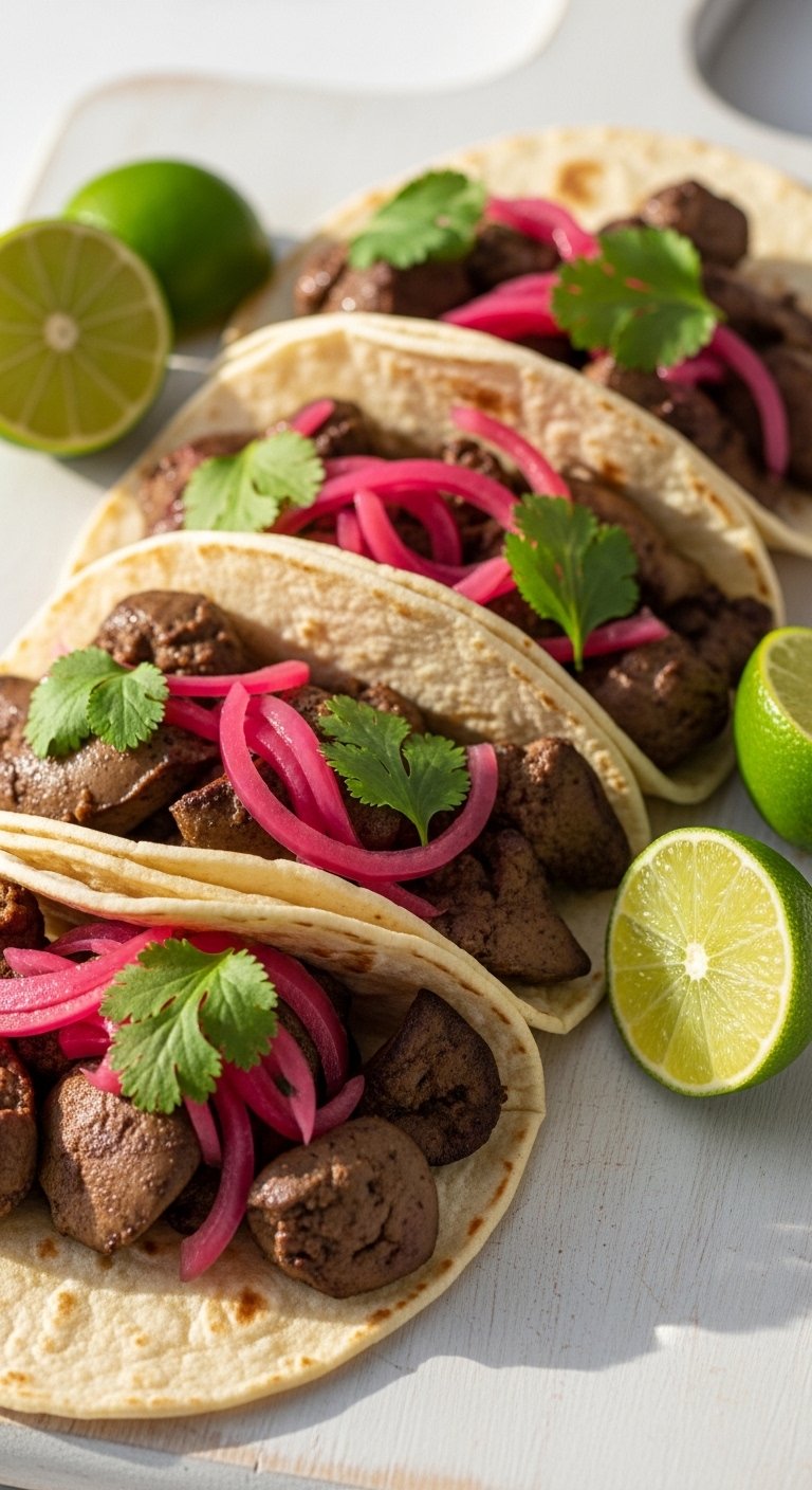 - Prepare Toppings: Caramelize onions and sear livers 2–3 minutes.