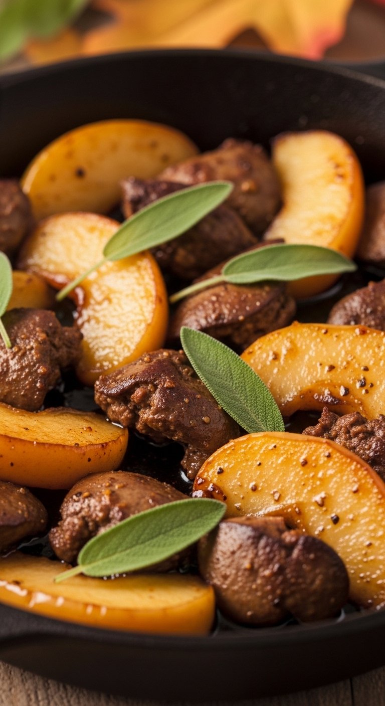 Sweet apples and fragrant sage balance the rich livers in this autumnal skillet. Quick searing and a honey glaze make it a warm, comforting dish.