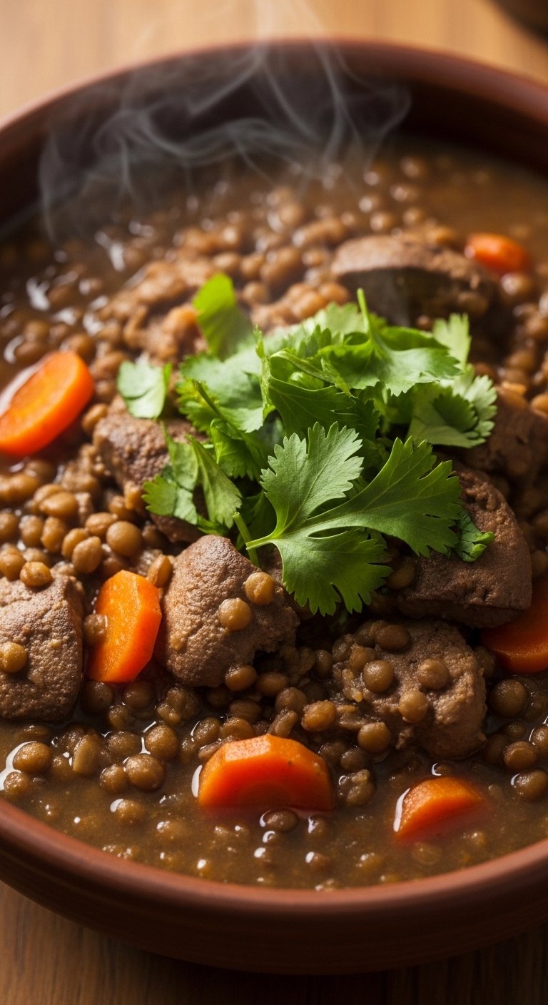 A one-pot stew with lentils makes for a nourishing, slow-simmered dinner. Livers add rich protein and the lentils hold up well—great with crusty bread.