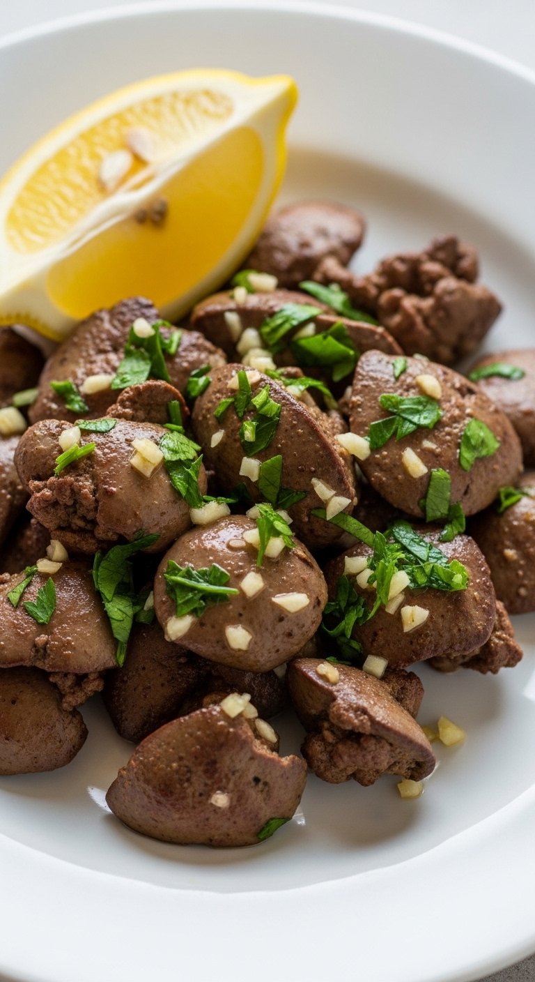 - Sear With Garlic: Heat oil, add garlic for 30 seconds, then add livers and sear 2–3 minutes per side.