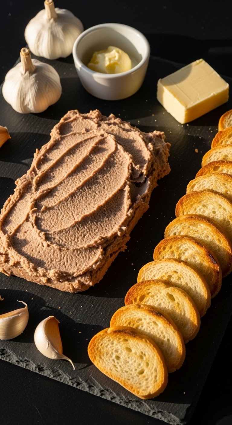 Cream cheese lightens pâté for a creamy spread that’s easy to whip up. Garlic adds aromatic depth—great for guests or snacks.
