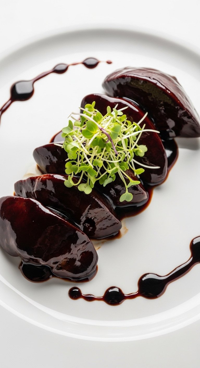 Garlic meets a bright red wine reduction for a slightly tangy, luxurious sauce. Rich livers get a refined touch—great with mashed potatoes or polenta.