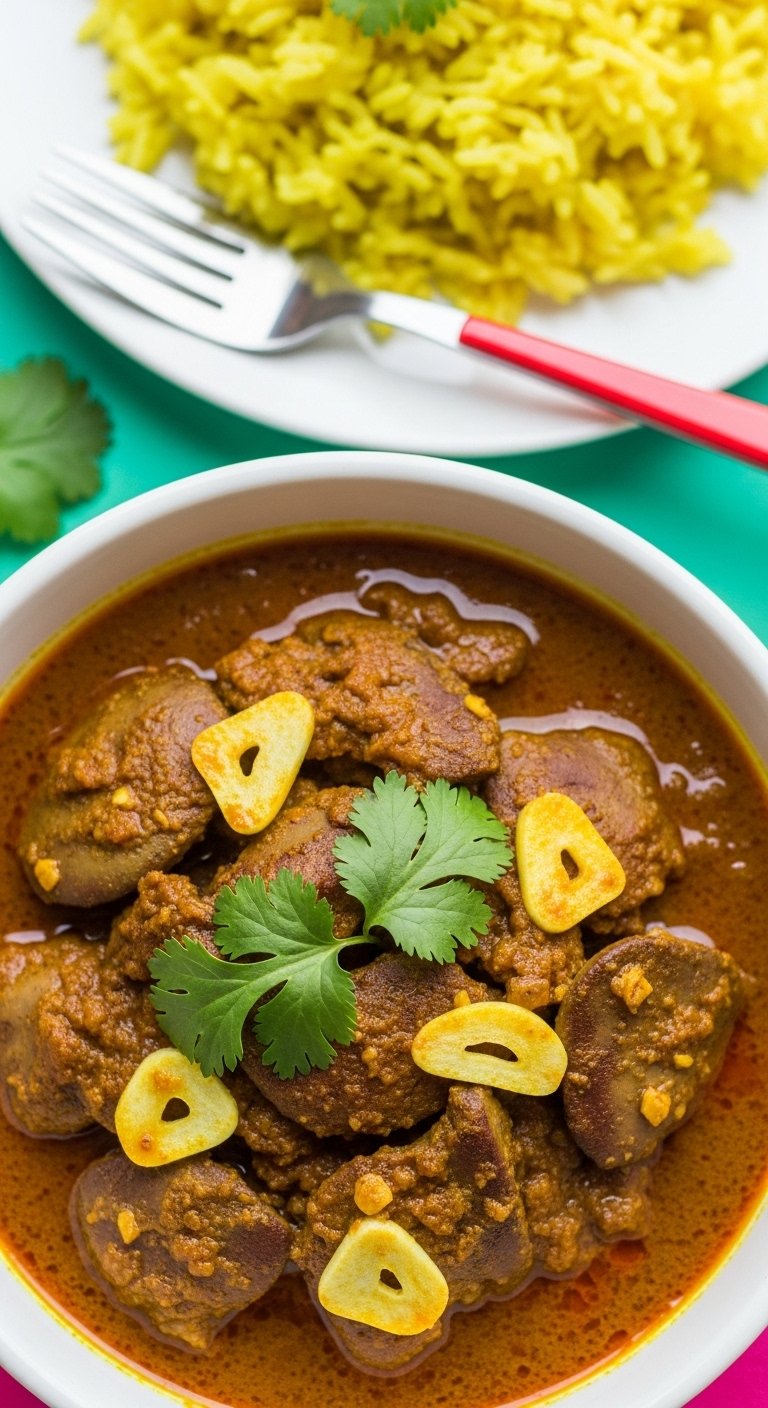 Tomato and garlic create a hearty stew base. Livers poach gently in the sauce for comfort-food vibes—serve with rice or crusty bread.