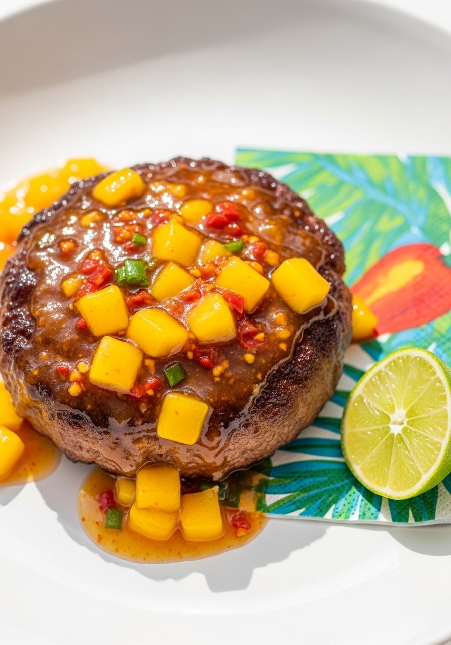 Sweet mango balances habanero heat for a lively tropical patty. Use habanero sparingly if you’re heat-sensitive.