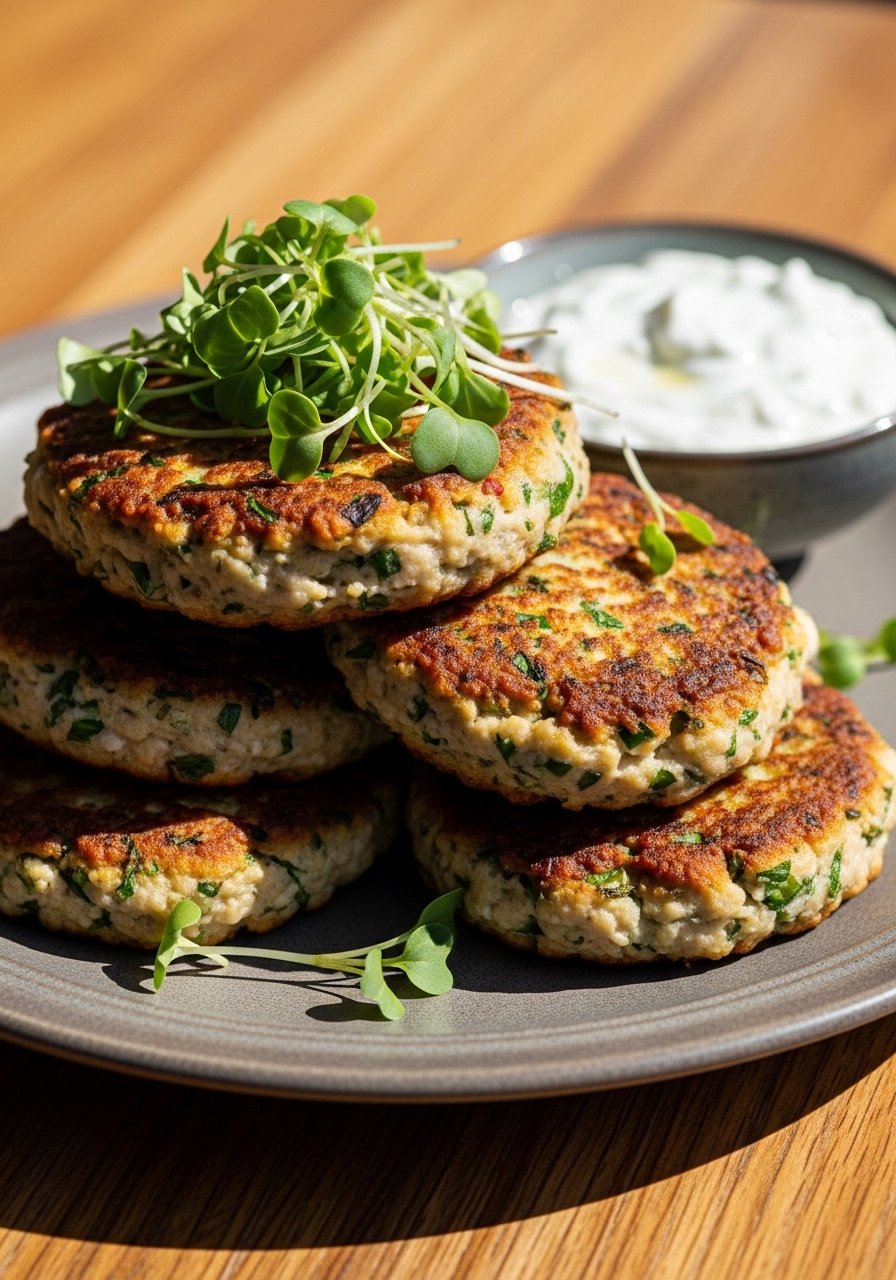 Bright herbs and almond meal make these patties tender and lightly crisp. You’ll get a golden exterior and herb-forward interior—great in lettuce wraps or on a simple salad.