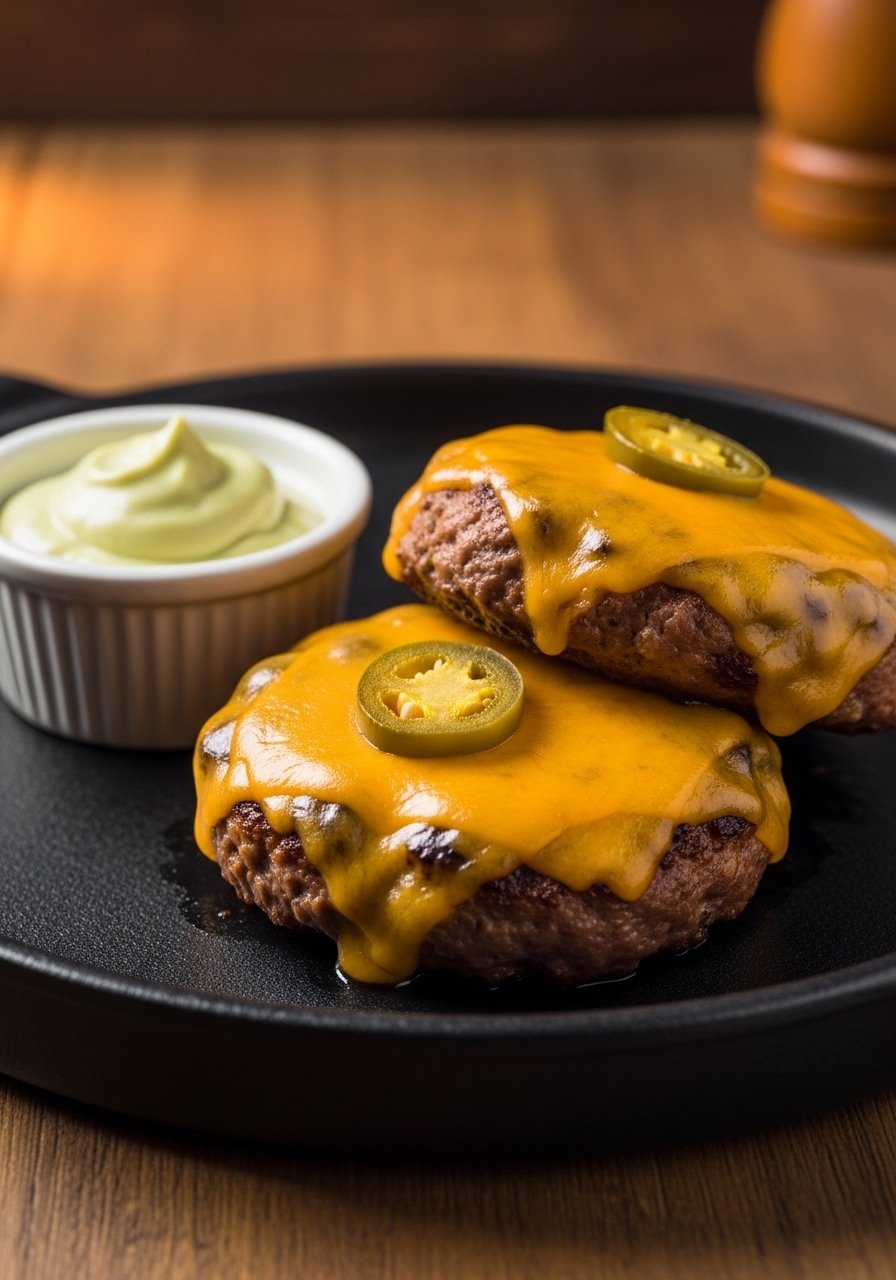 Spicy jalapeño and melty cheddar create a lively patty. Almond flour keeps it low-carb while the cheese helps bind and brown.