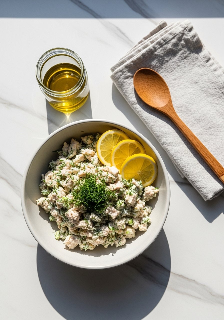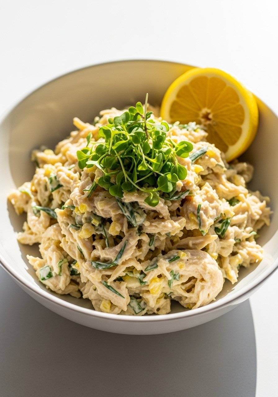 Tangy Greek yogurt brightens cooked chicken with fresh dill, parsley, and lemon zest. Light, herb-forward, and great in pita pockets or over mixed greens.