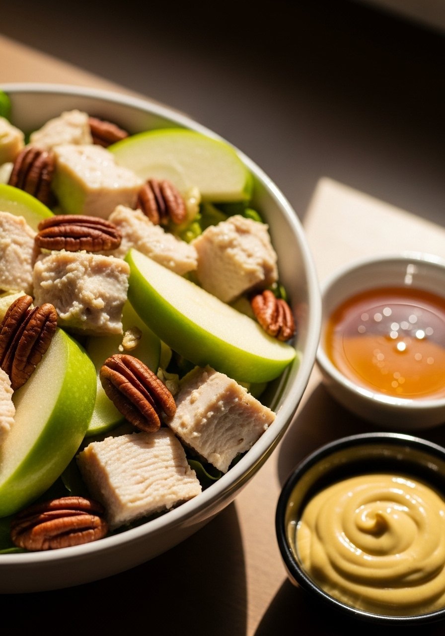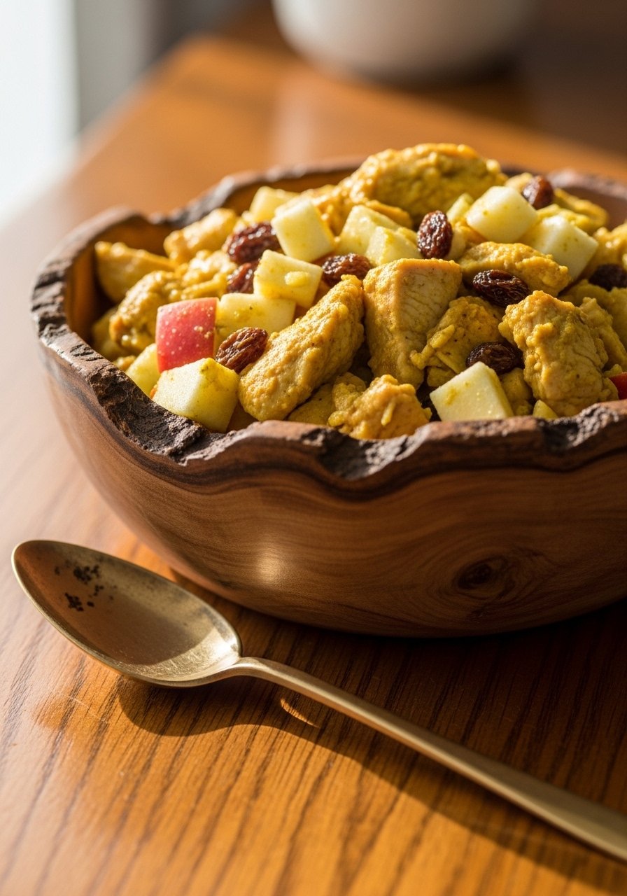 - Add mix-ins: Fold in diced apple, raisins, and chicken. Combine gently.