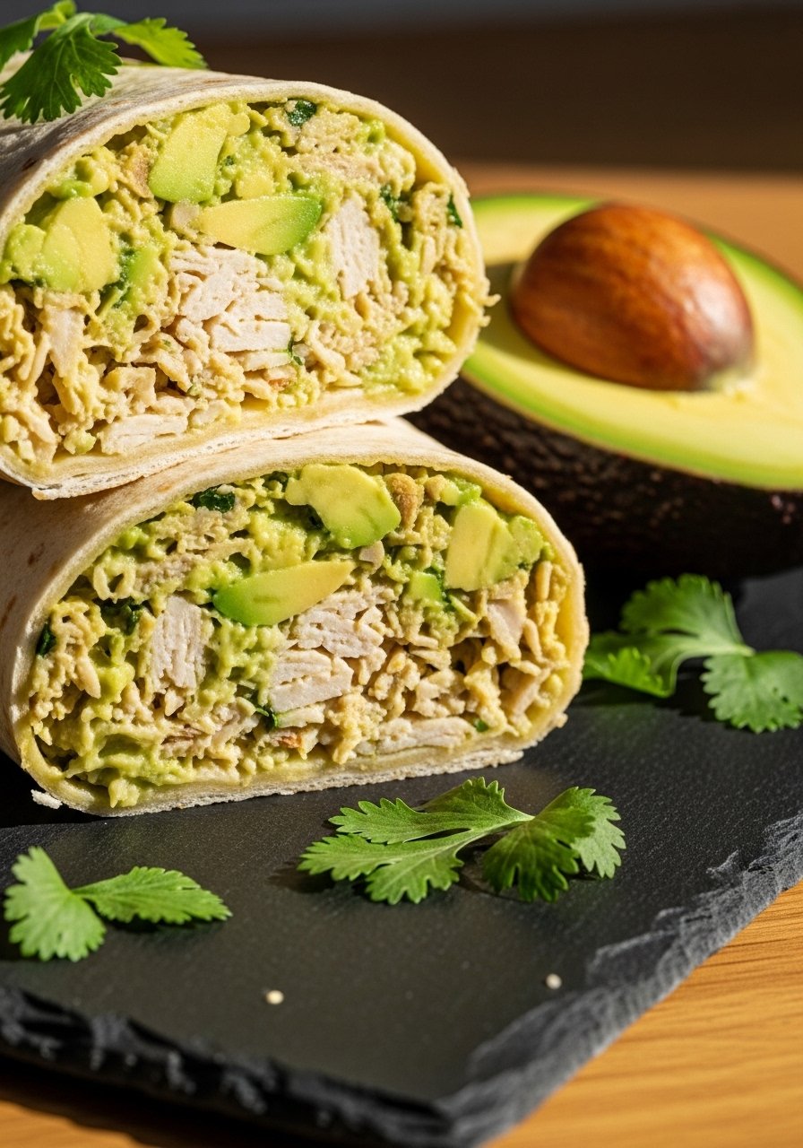 Creamy avocado replaces most mayo for a rich, fresh chicken salad. It’s buttery, healthy, and rolls easily into whole-wheat wraps for an on-the-go lunch.