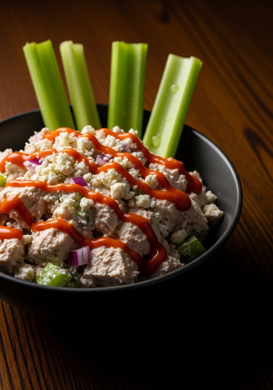 Spicy buffalo sauce and creamy blue cheese create a bold, tangy chicken salad. Crunchy celery adds freshness and balance.