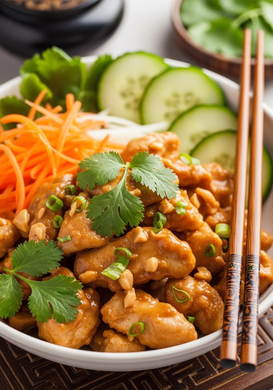 - Add chicken: Fold in chicken and sesame seeds.