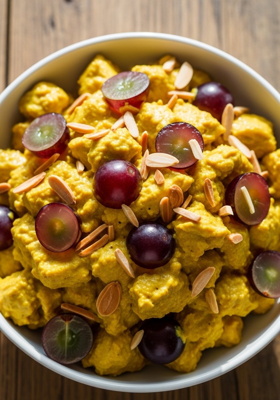 Greek yogurt lightens curry-spiced chicken, while grapes add bursts of sweetness. Almonds give crunch for a delightful texture mix.