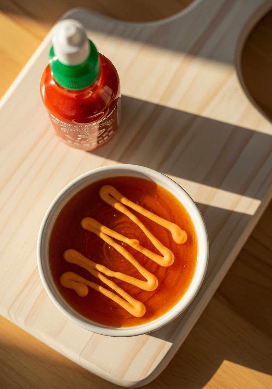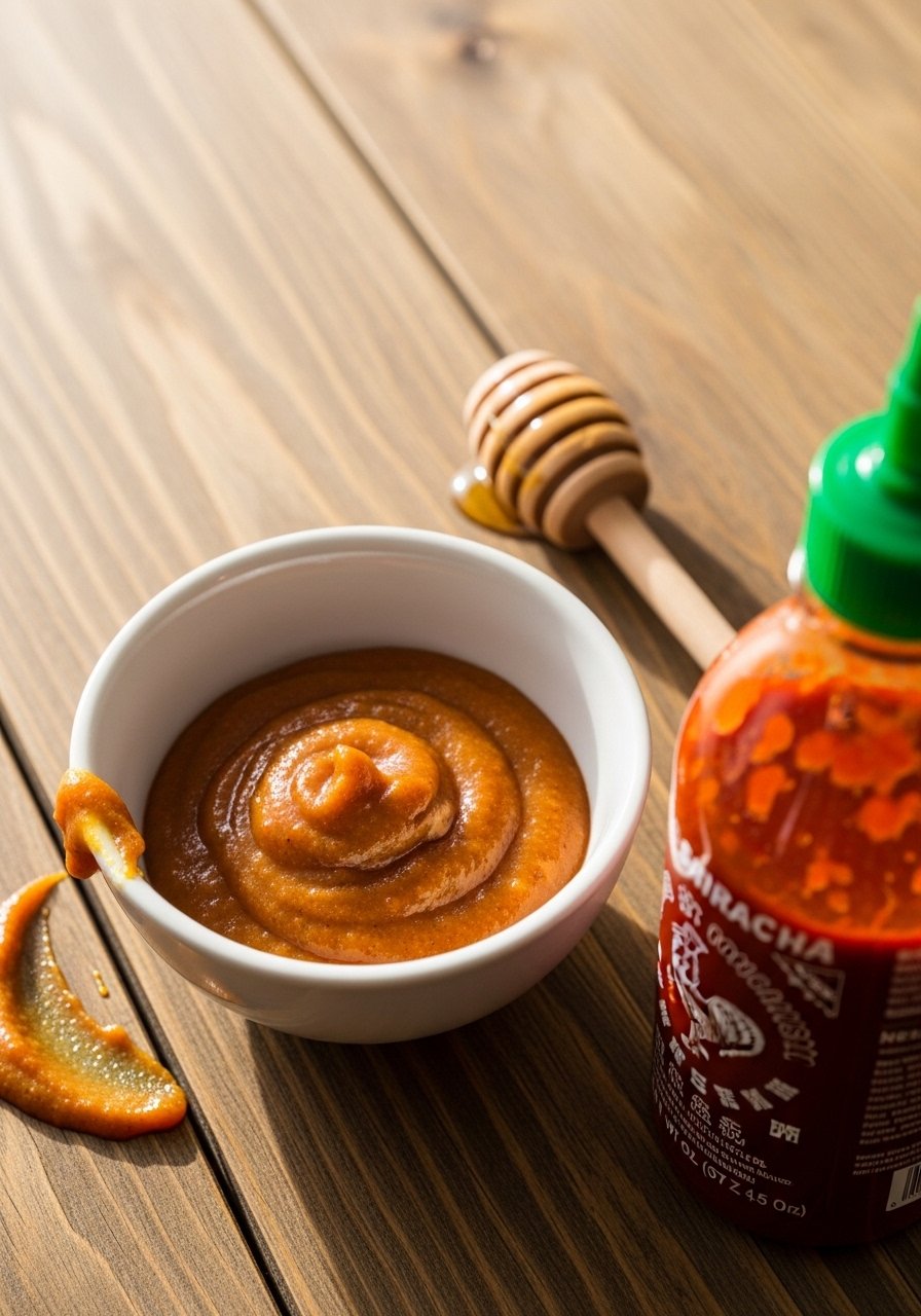 A balanced sweet-spicy mustard with maple depth and sriracha heat. It’s tangy, glossy, and pairs especially well with smoky chicken.