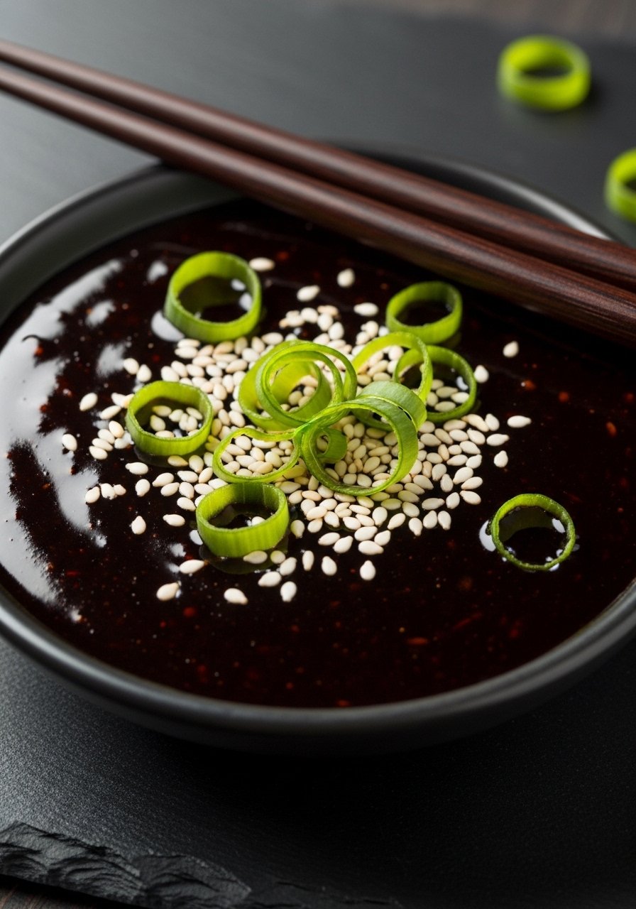 A salty-sweet Asian-inspired dip with bright ginger and toasted sesame. It’s thin and punchy—great for a lighter, savory hit.