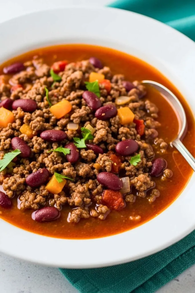This classic chili recipe combines ground beef, beans, tomatoes, and a perfect blend of spices for a deeply satisfying meal.