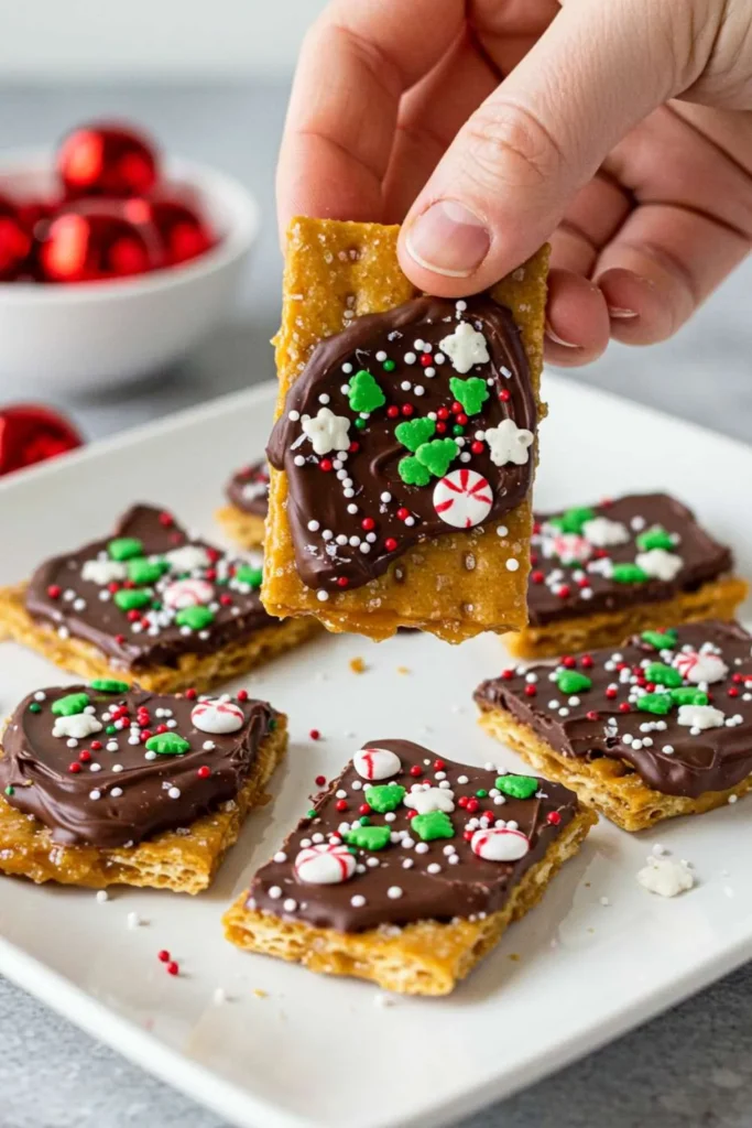 This recipe transforms ordinary saltine crackers into a golden, caramelized base topped with smooth chocolate and a sprinkle of festive toppings.