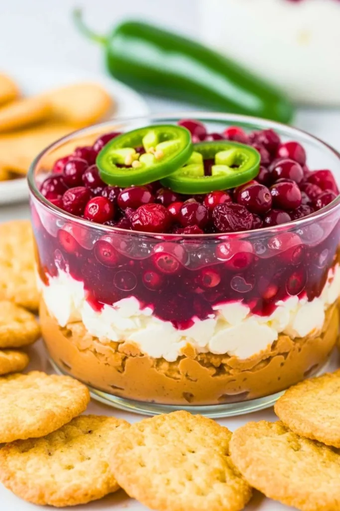 Fresh cranberries, zesty jalapeños, and a touch of lime come together over a cool cream cheese base to create a dip that’s as beautiful as it is delicious.