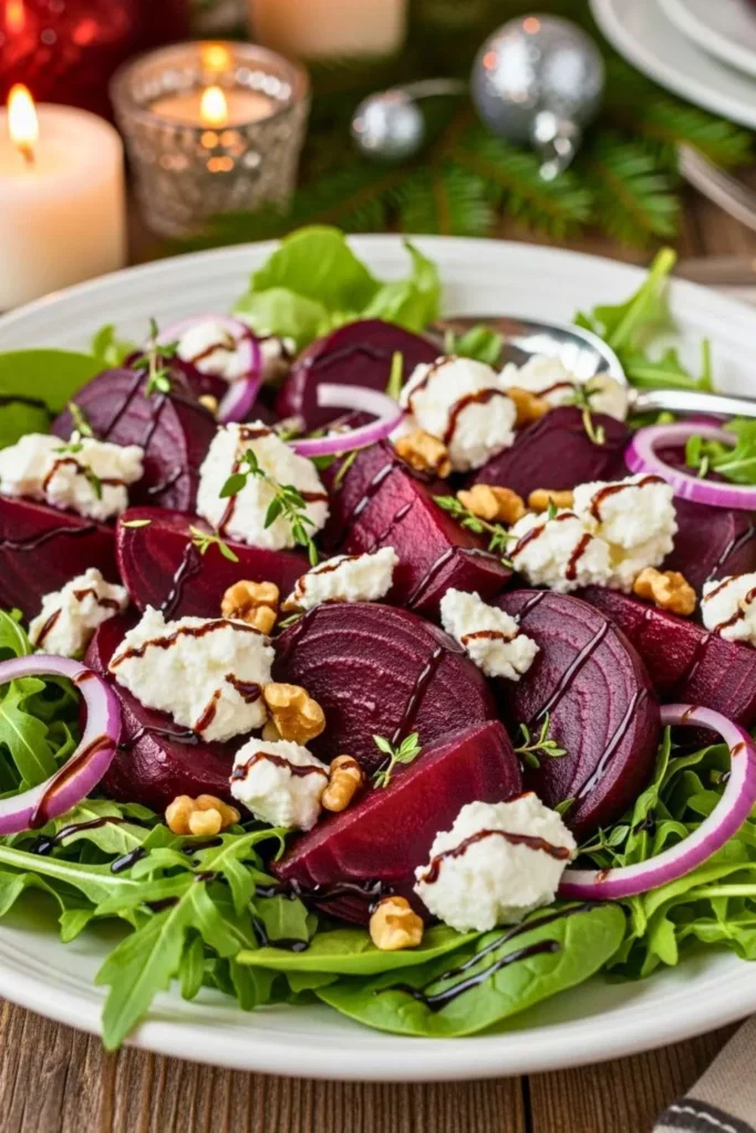 Earthy roasted beets and creamy goat cheese make this salad rich yet refreshing. The bright red beets look beautiful on any Christmas table.
