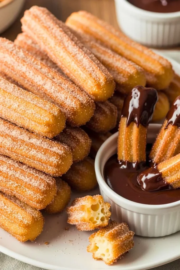 Serve churros fresh and warm for the best texture. Dip them in melted chocolate, dulce de leche, or even caramel sauce. They’re delightful plain, too, with that classic cinnamon aroma filling your kitchen.