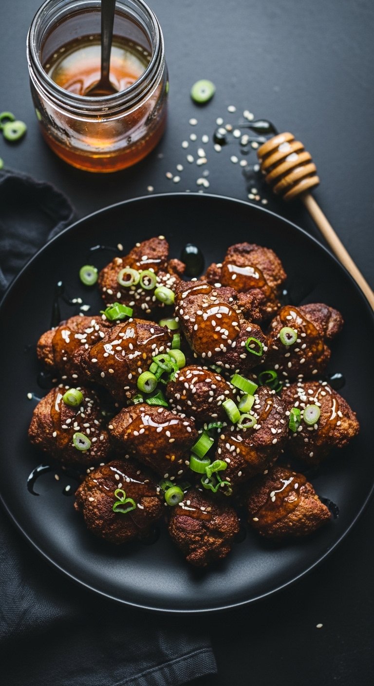 Spicy-sweet gochujang glaze gives bold umami and caramelized edges. The contrast of crunchy coating and sticky sauce makes these addictive party bites.