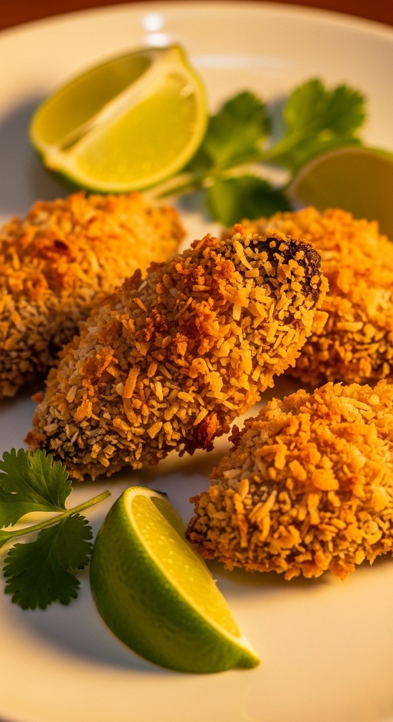 - Mix Coating: Combine panko, coconut, curry powder, salt, and pepper.