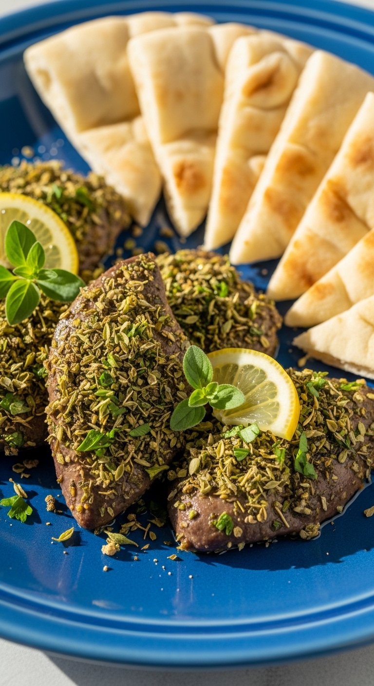 Za’atar’s herbal, nutty notes brighten the livers and create an aromatic crust. Serve with tangy labneh for a Middle Eastern-inspired appetizer.