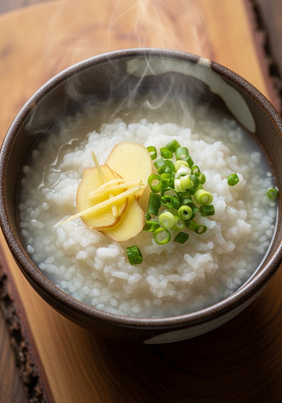 Silky and bland-friendly, congee soothes the stomach. Fresh ginger offers gentle warmth while rice creates a comforting, easy-to-digest base.