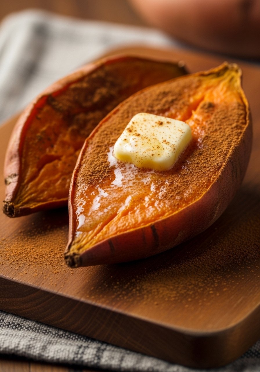 Simple baked sweet potato is soothing and nutrient-dense. Butter and cinnamon add gentle sweetness and warmth—easy to prepare and digest.