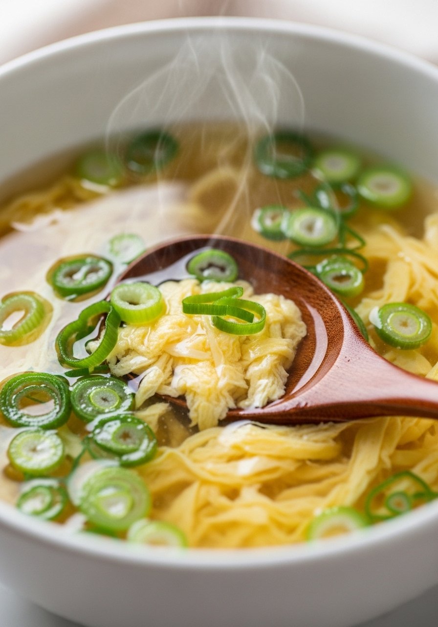 Velvety egg ribbons in a clear broth—light, fast, and comforting. This soup is hydrating and soothing for sore throats and upset stomachs.