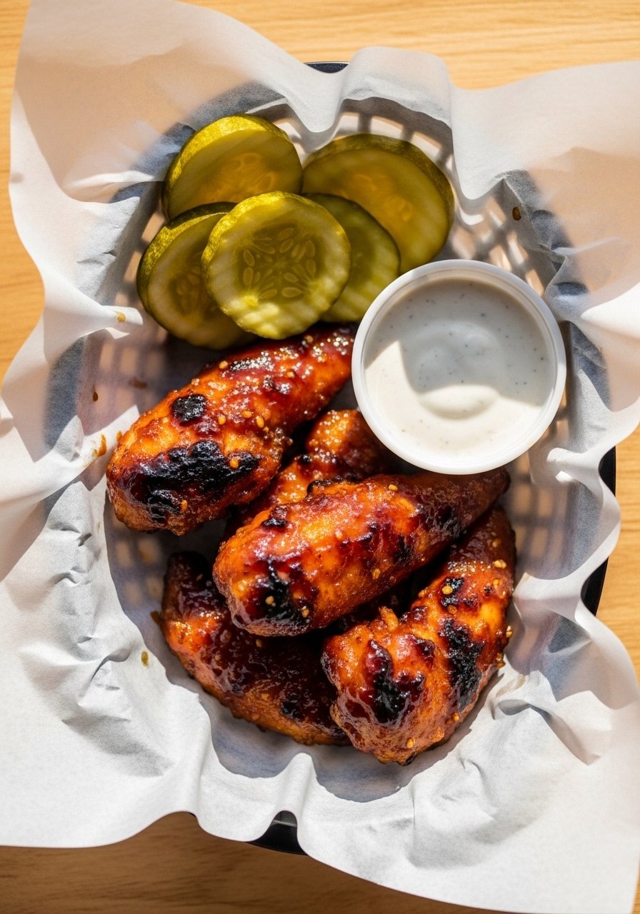- Air fry: Arrange chicken in a single layer (work in batches). Cook 8–10 minutes, shaking halfway, until browned and 165°F inside.