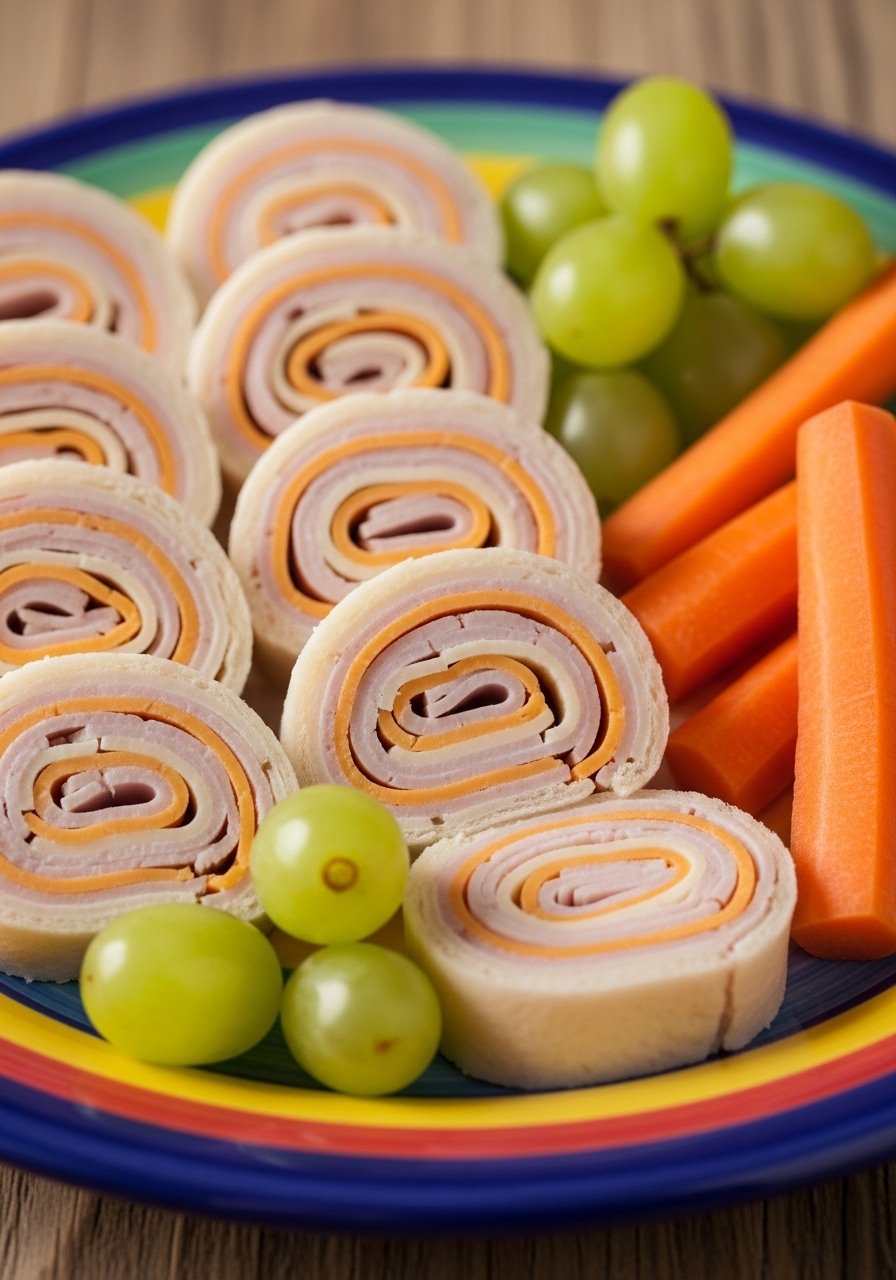 Soft turkey and mild cheddar roll into an easy handheld bite. They’re savory, slightly creamy from a thin spread, and great for dipping. Kids love the roll shape and you can add a crisp veggie for texture.
