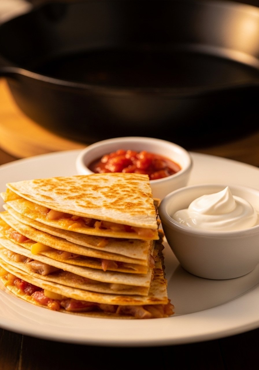 - Cook & Flip: Melt butter, cook 2–3 minutes per side until golden and cheese is melted. Cut into wedges.
