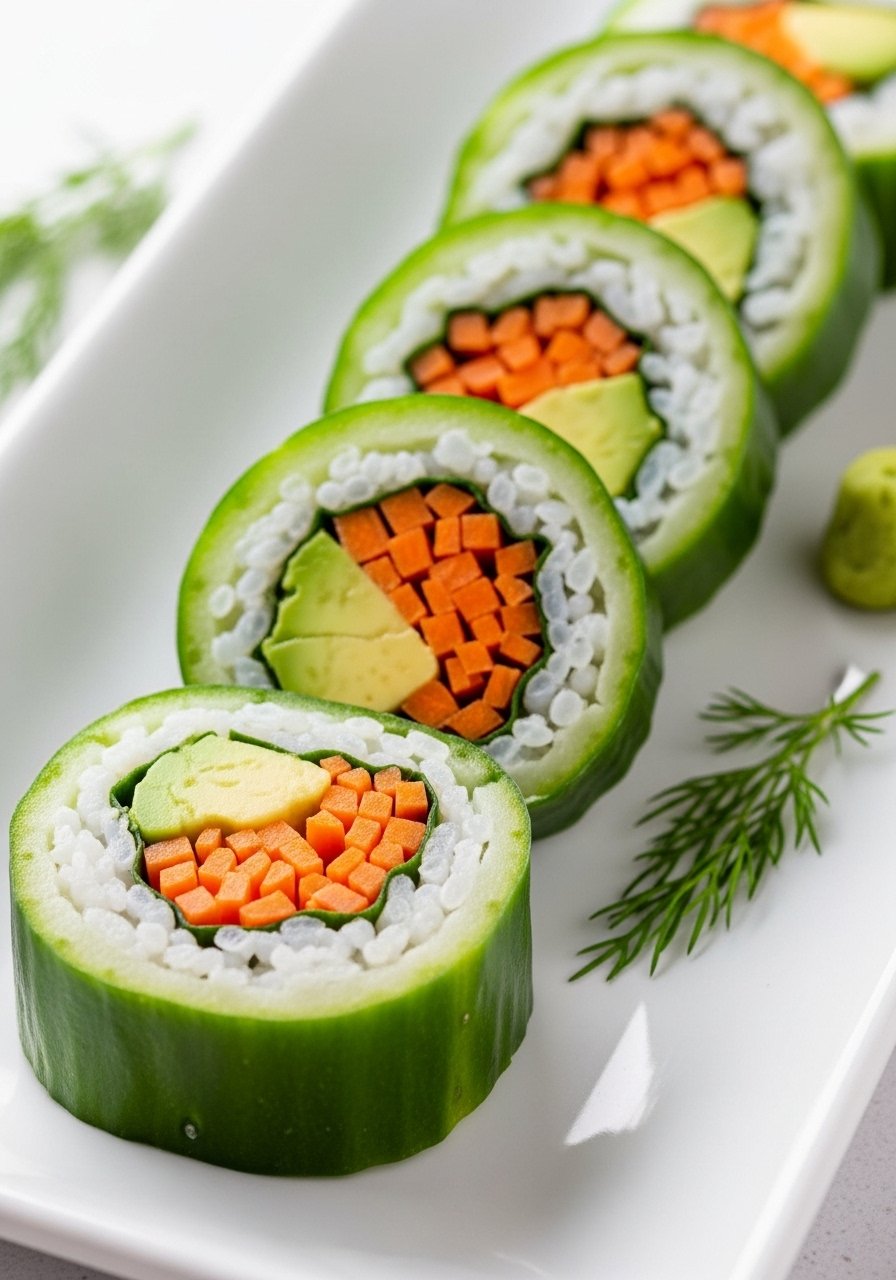 - Layer: Place a half cheddar slice and a cucumber stick near one edge.