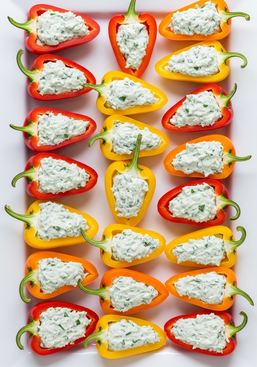 - Fill Peppers: Spoon or pipe filling into each pepper half.