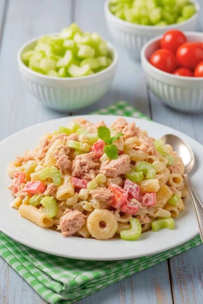 This protein-packed pasta salad is creamy, hearty, and perfect for a quick lunch or a make-ahead meal. Tuna adds a satisfying flavor while celery gives a refreshing crunch.
