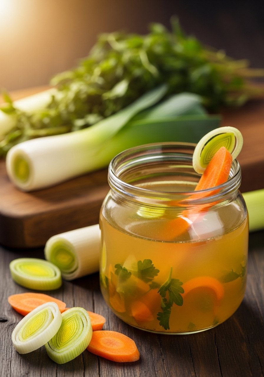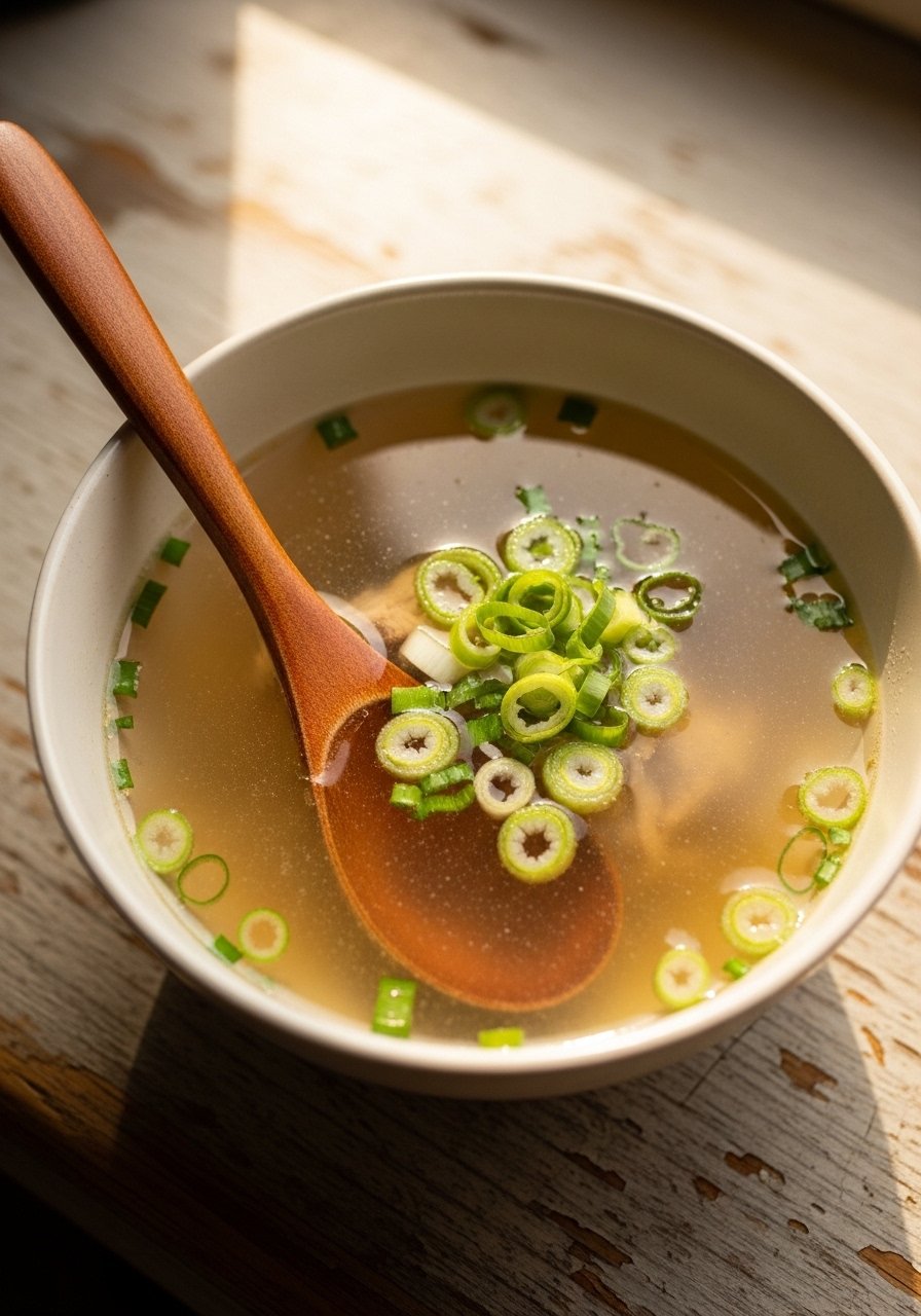 A clear, savory broth that hydrates and comforts. It’s light, savory, and full of gentle flavor. Sip it hot to soothe a sore throat and replace fluids.