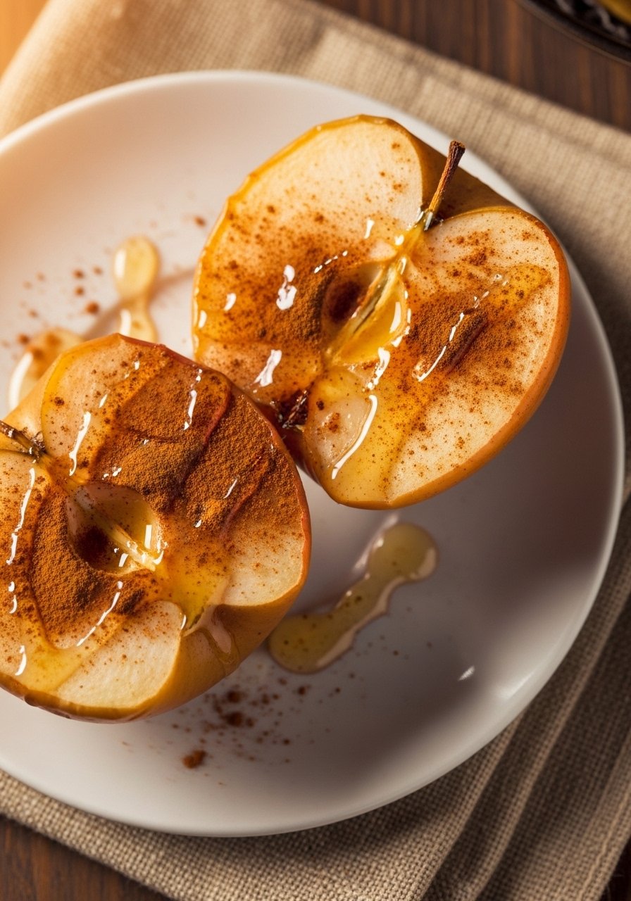 - Prepare apple: Place apple halves in a small baking dish, add butter, drizzle honey, and sprinkle cinnamon.