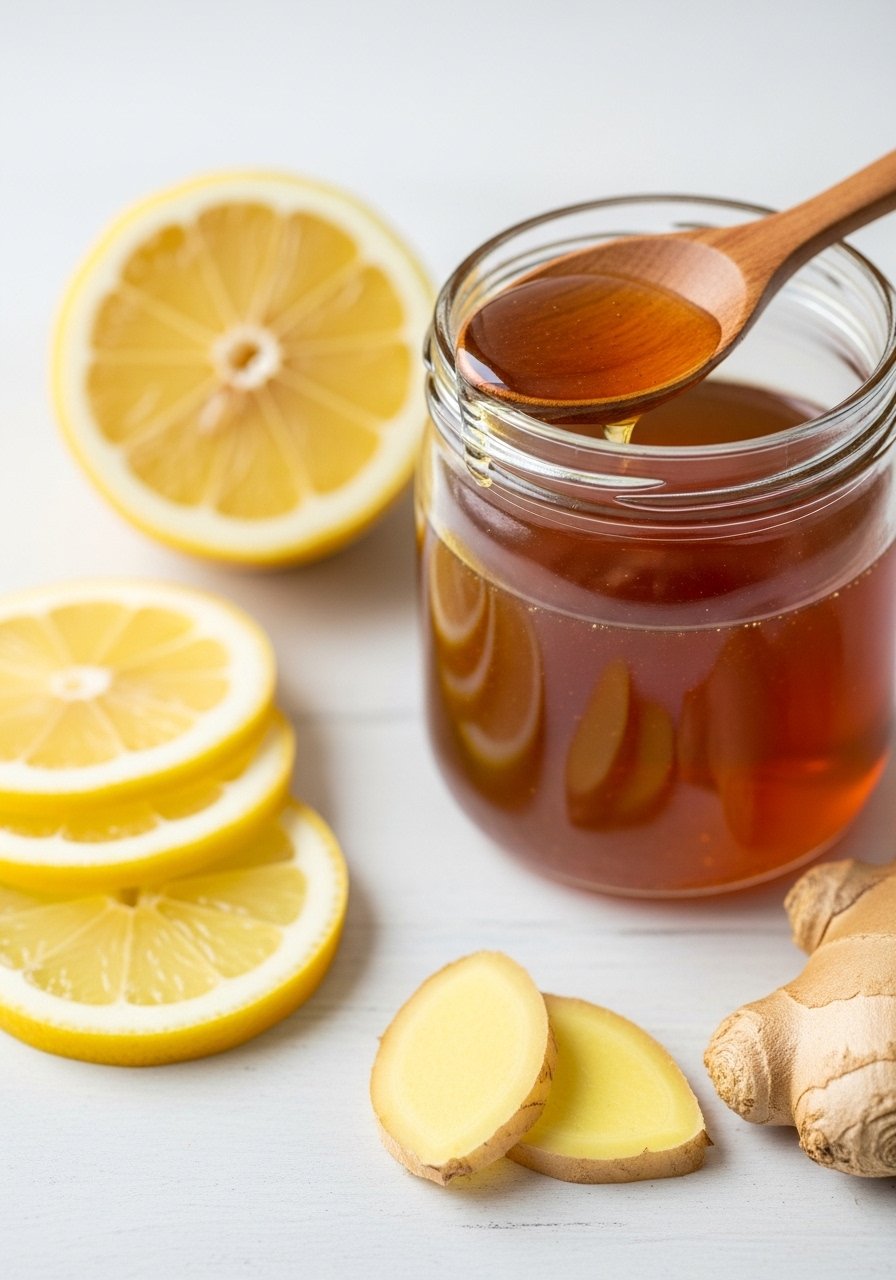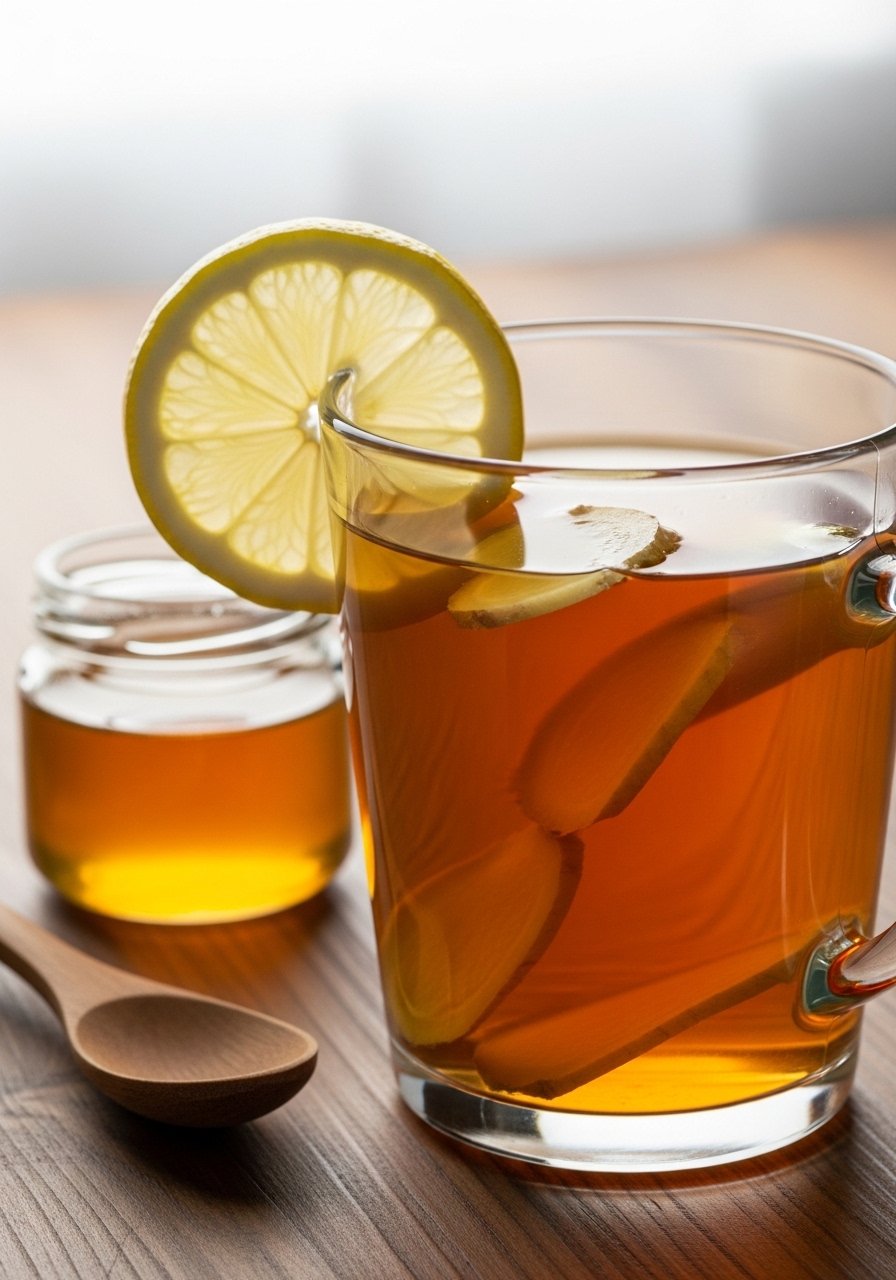 A soothing hot toddy without alcohol—ginger, lemon, and honey warm and calm the throat while promoting relaxation.