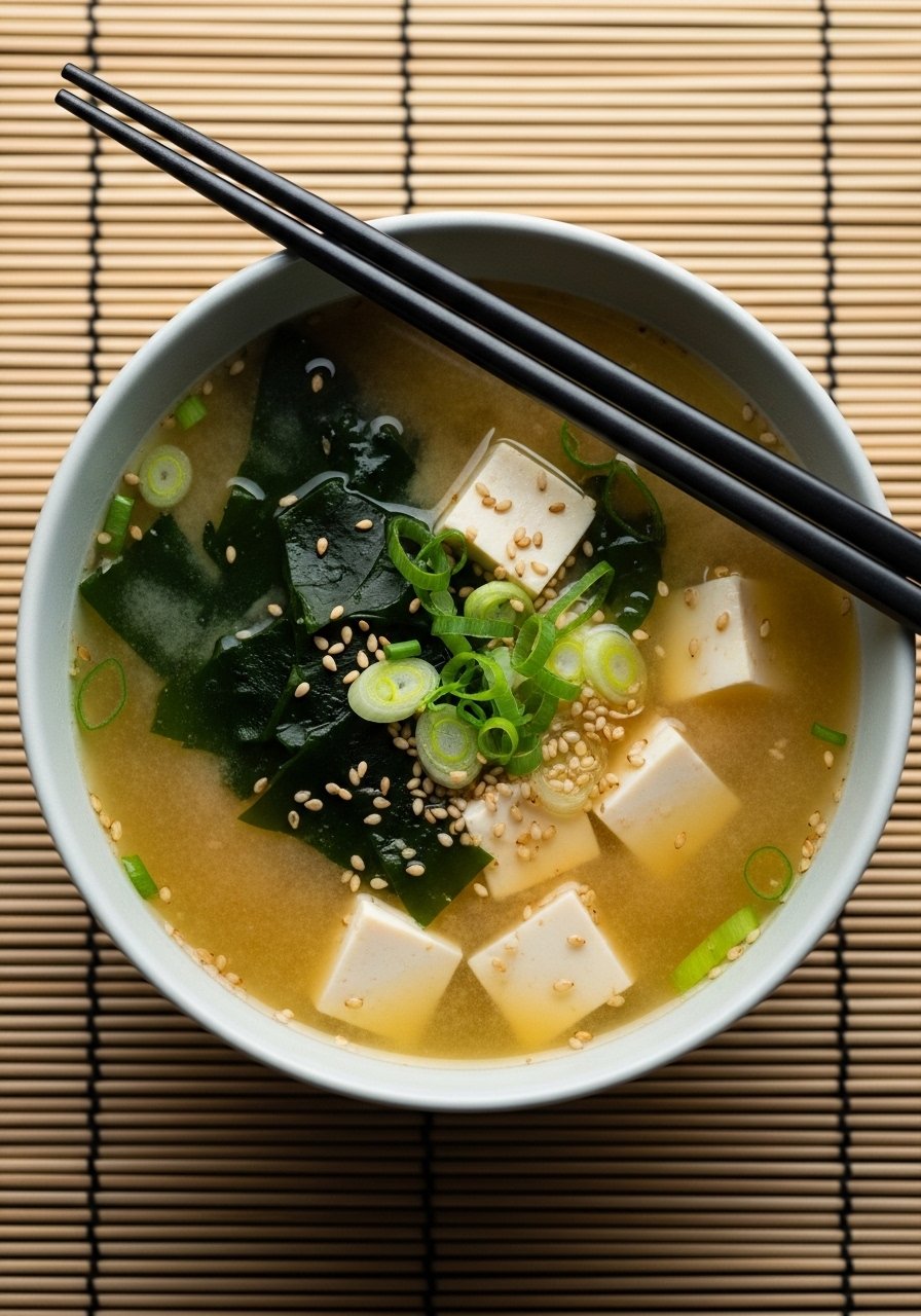 A light, savory broth with probiotics from miso. It’s gentle on the stomach and quick to make when you want something warm and restorative.
