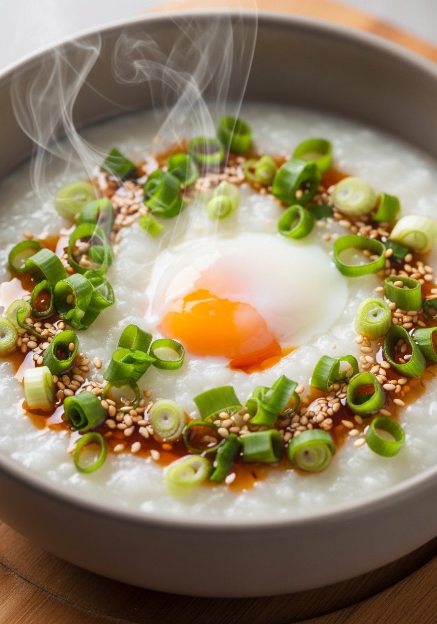 Comforting rice porridge that’s gentle on the stomach and easy to customize. It’s soothing, hydrating, and great for resting digestion.